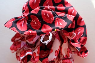 Specifically, men’s bathing suit fabric. Inside: Making a reversible shower cap.