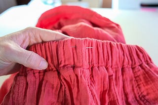 Inside: knit vs. braided elastic, waistband fixes, and Victorian eye brooches.